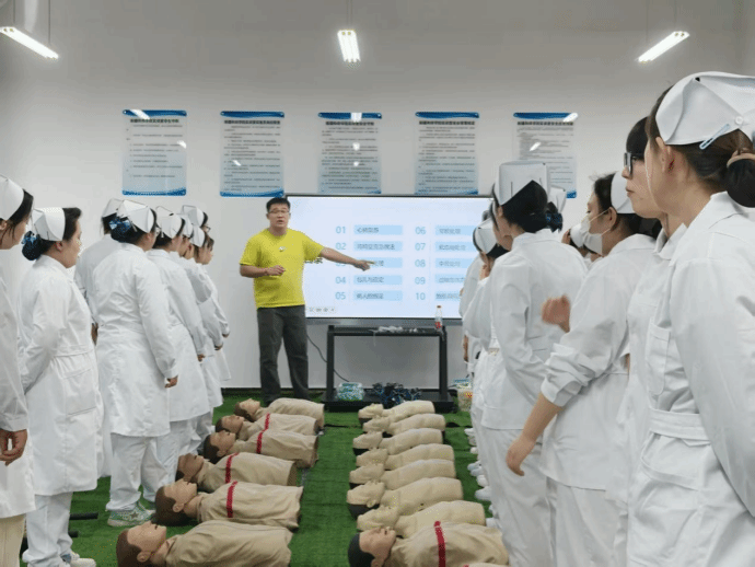 培训紧密围绕基层健康服务的核心要求,立足群众实际健康需求与护理专业特点展开。王浩通过理论讲解、实操示范、分组练习、案例分析等多元化教学形式,系统讲解了健康宣教技巧、常见急症应急处置、沟通礼仪及服务纪律等内容。此次培训不仅注重技能的精进,更强调责任意识与服务意识的树立,旨在帮助社员全面掌握下基层服务的必备本领,锤炼专业素养。